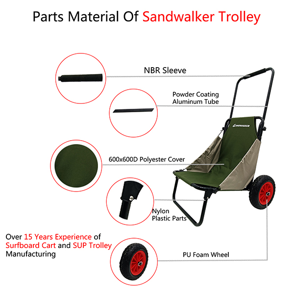 Việc mang thiết bị thể thao dưới nước của bạn đến bãi biển thật dễ dàng với chiếc xe đẩy này. Thiết kế rộng rãi và kết cấu chắc chắn cho phép bạn vận chuyển thiết bị của mình một cách dễ dàng.