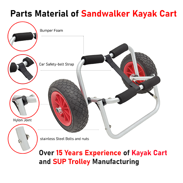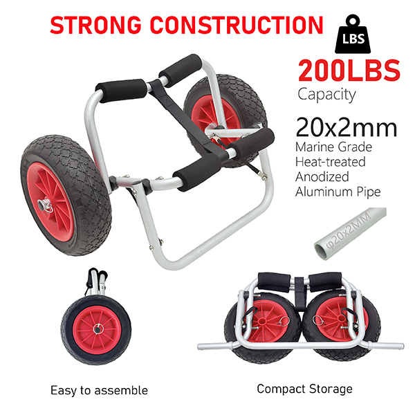 Xe đẩy Kayak tự hào có khung nhôm anod hóa chịu lực cao, không chỉ đảm bảo độ chắc chắn mà còn mang lại khả năng chống ăn mòn tuyệt vời.