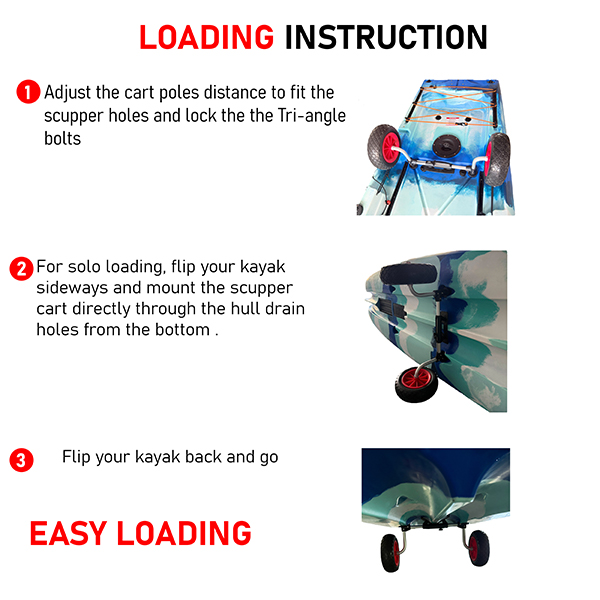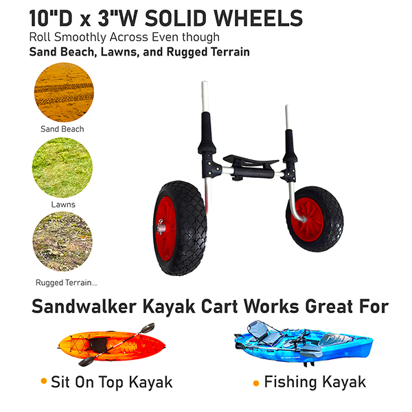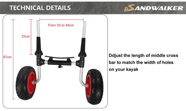 Xe đẩy Kayak Sit On Top được thiết kế đặc biệt để ngồi trên thuyền kayak và thuyền kayak có mui, với bộ điều khiển khóa có chiều rộng thay đổi có thể điều chỉnh từ 30-48CM.
