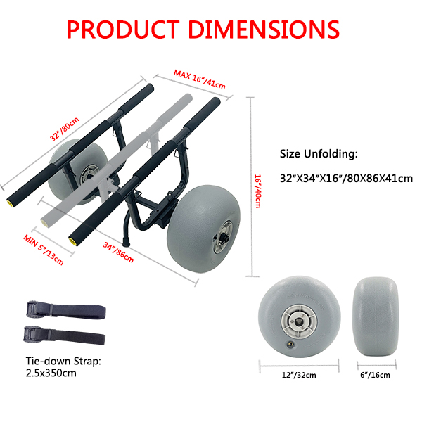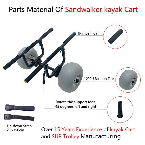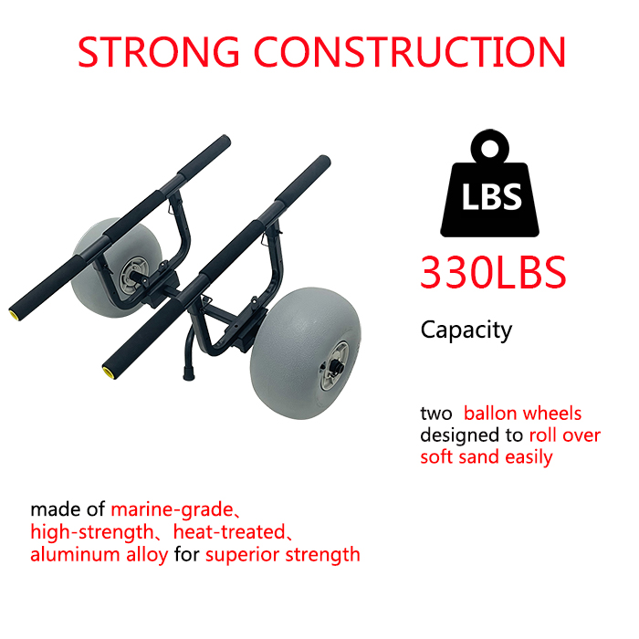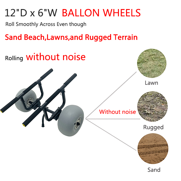 Khả năng cơ động dễ dàng với bánh xe bãi biển: Xe đẩy Kayak đa năng được trang bị hai bánh xe bãi biển được thiết kế đặc biệt để lăn trên cát mềm một cách dễ dàng. Những bánh xe chắc chắn này có khả năng chuyên chở 330 lbs, đảm bảo chúng có thể xử lý trọng lượng thuyền kayak của bạn một cách dễ dàng.